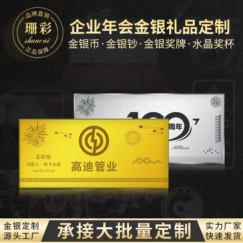 Shan Cai commemorative gold and silver banknote custom 999 sterling silver gold coin 5 8 10 grams company listing anniversary celebration staff gift