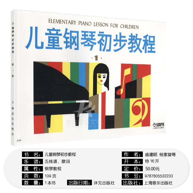 Genuine Children's Piano Preliminary Tutorial 1 Volume Piano Beginner's Beginner's Introduction Staff Book Introduction Piano Basic Learning Basic Practice Music Score Children's Piano Score Song Teaching Book 1