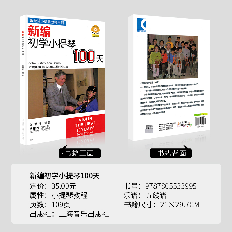 Genuine Violin Beginner Tutorial New Chronology Violin 100 Days Zhang Shixiang Zero Foundation Self Study Teaching Materials Children Beginners Entrance Tutorial Book Exercises Qu Bow Method Basis Send Teaching Film Qu Spectral Musical Score Sheet Music Score