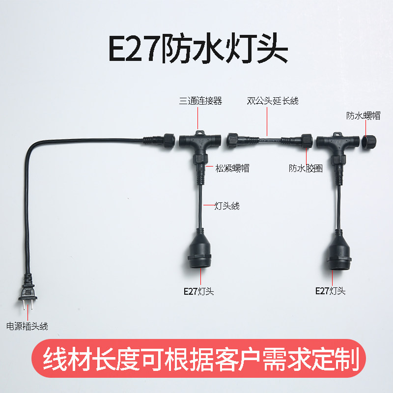Waterproof lamp head E27 connector plug e27 screw thread chandelier head suspension extension line lamp head farm