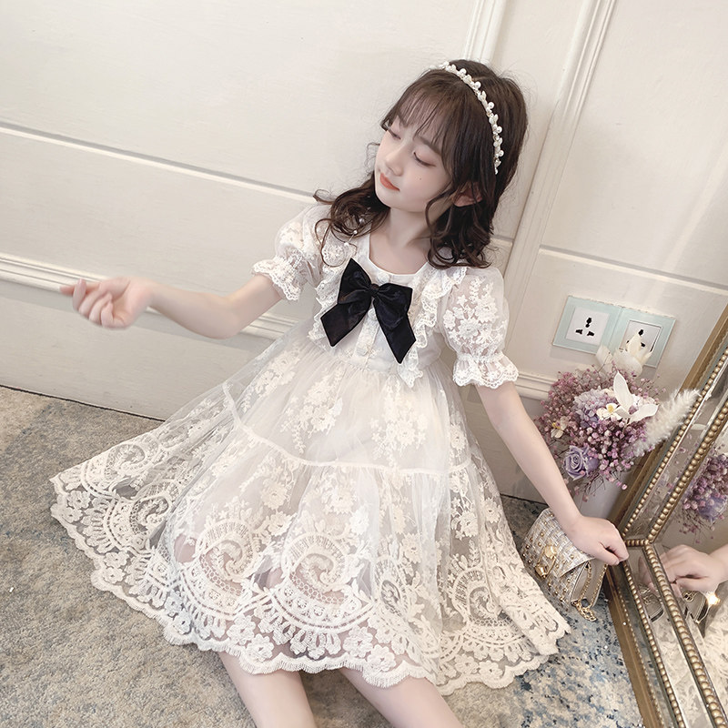 Girls dress Net Red children's clothing 2021 New French high-end foreign style little girl lace dress children princess dress