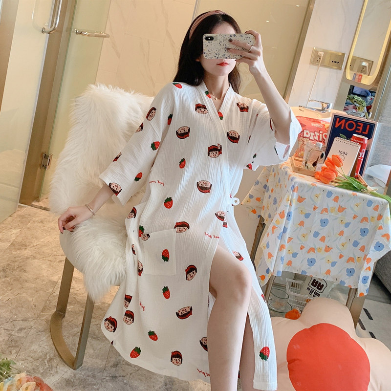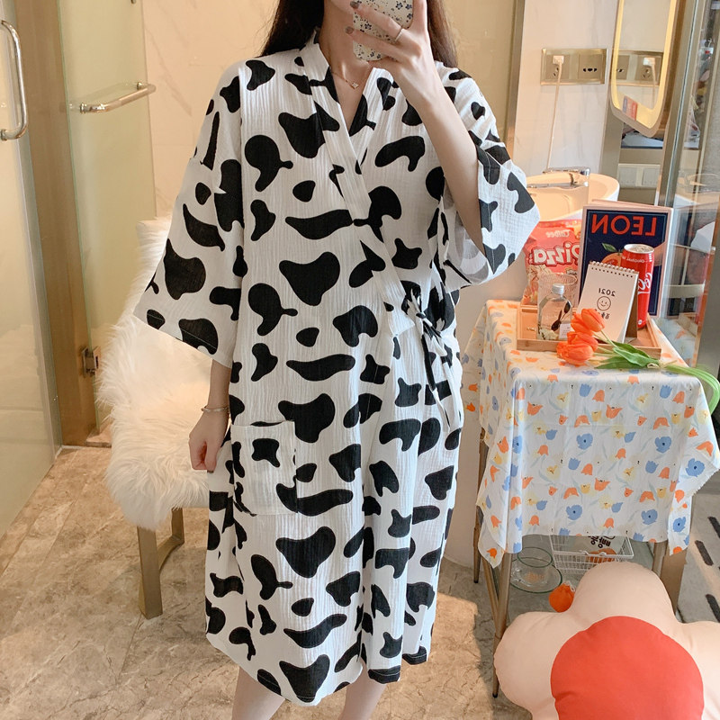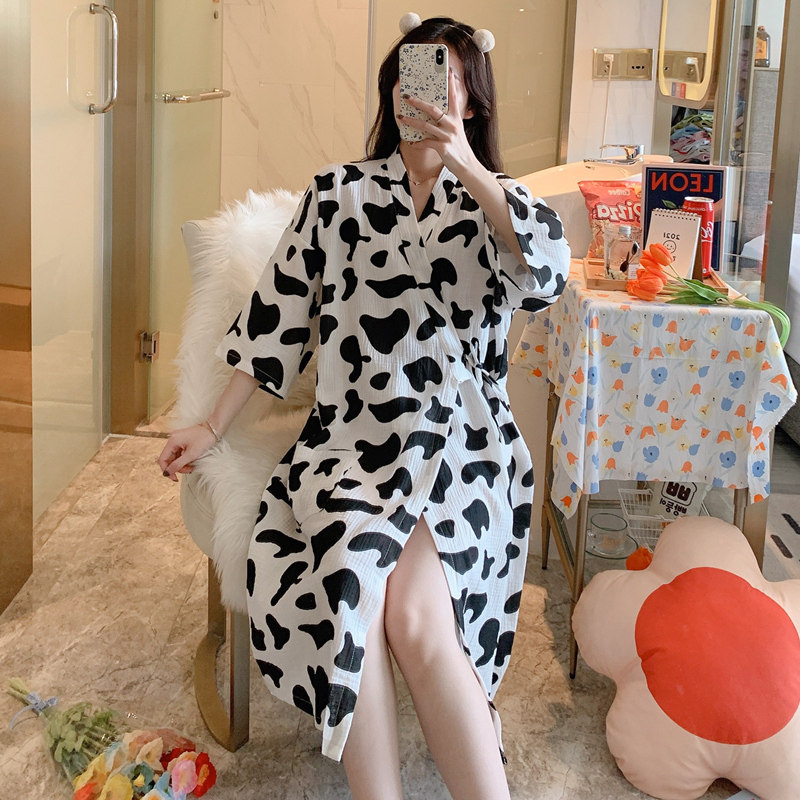 Day Ensemble Sleeping Skirt Woman Summer Pure Cotton Cotton Cloth Half Sleeve Loose Sleeping Gown Day Style Kimono and Thin Ruler size Bathrobe Dairy Cow Pajamas