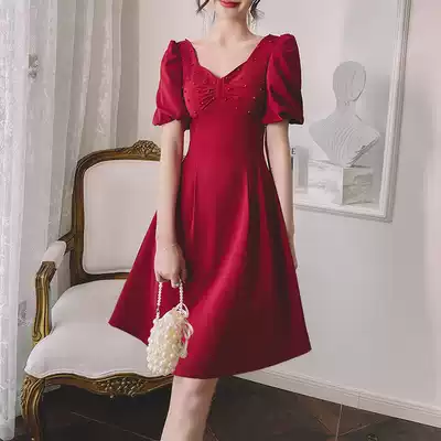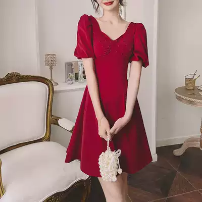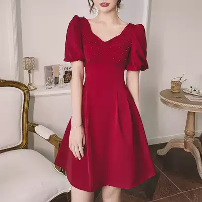 Toast Bride 2021 New style can wear summer engagement dress women's short wine red back dress