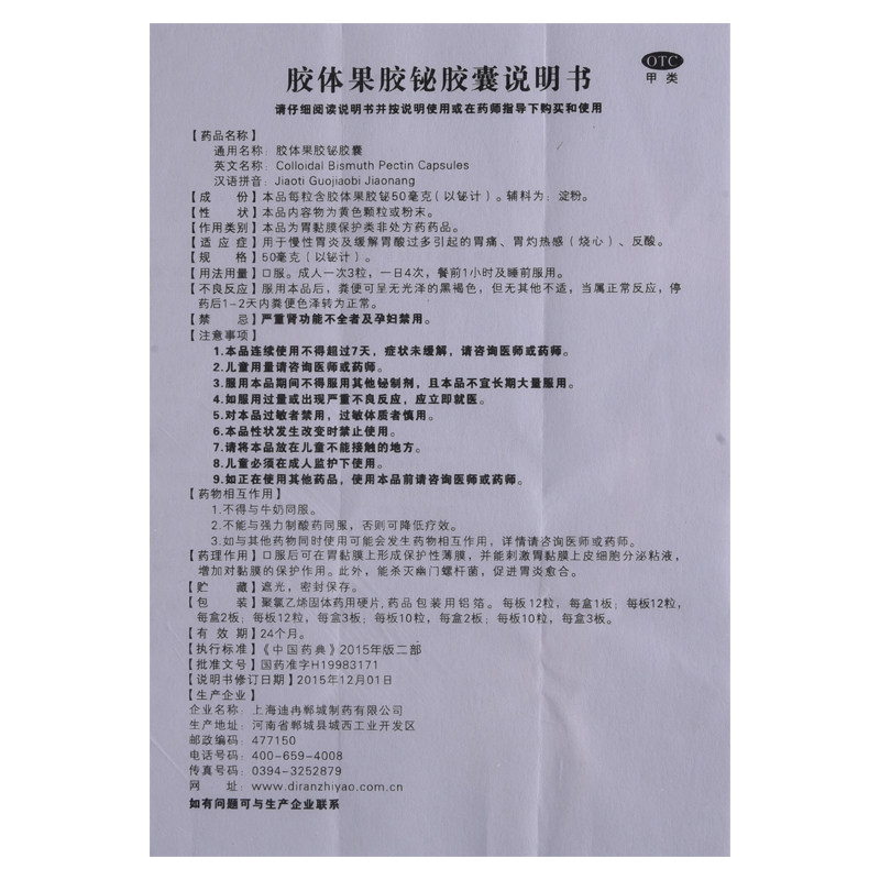 Diran colloidal bismuth pectin capsules 20 capsules chronic gastritis hyperacidity caused stomach pain acid reflux c