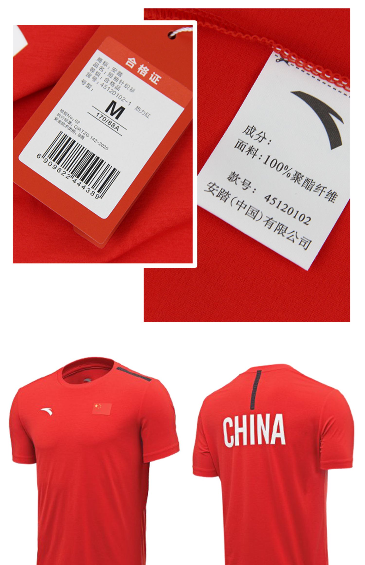 Anta sponsors the 2021 national team tricolor sports round-collar T - shirt