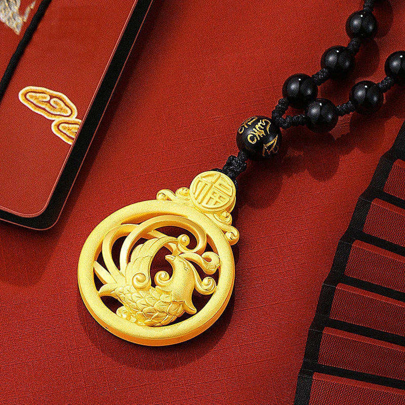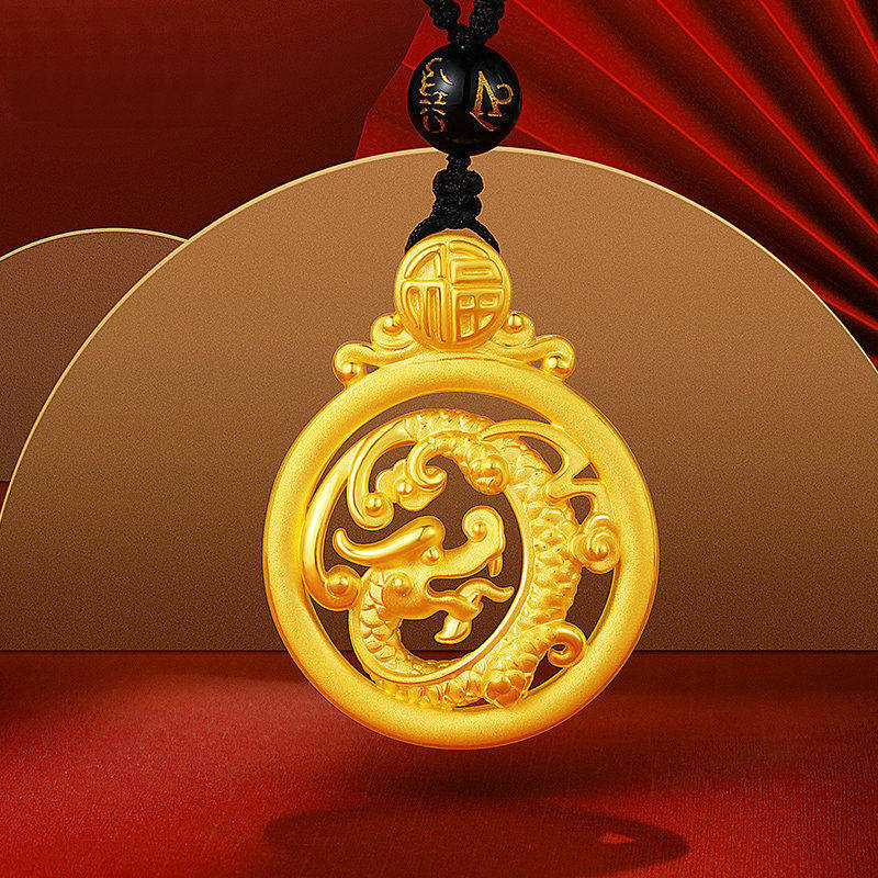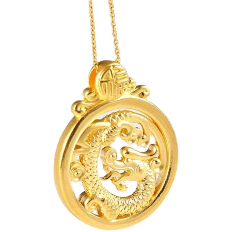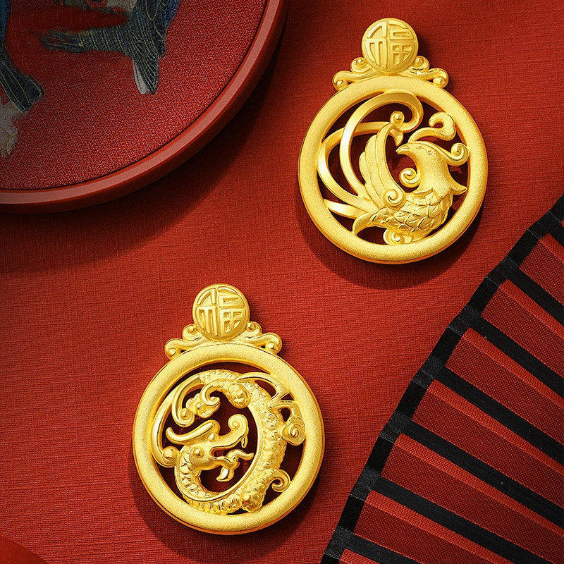 Hong Kong 999 real gold Long Feng couple pendant 3D hardgold Phoenix gold necklace foot - gold crash