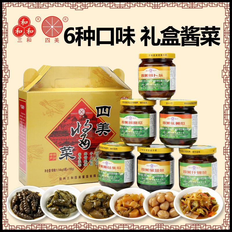 Yangzhou terrafic and four-mei sauce Gift Boxes 190g * 6 Bottled Sauce Melon Pickled Cucumber Szchindish Small Robe head