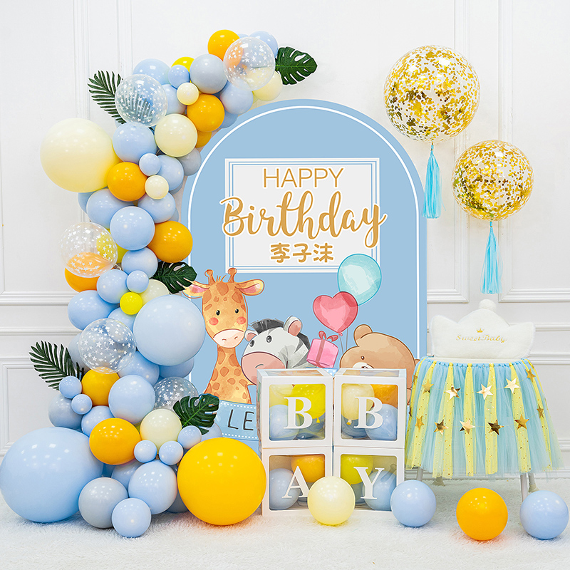 Boys and girls birthday decoration scene layout baby 100-day feast macaron balloon background wall package 2