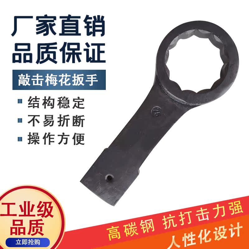 Percussion plum wrench heavy-duty hammering high-quality carbon steel integral forging one-piece single-head straight handle plum wrench