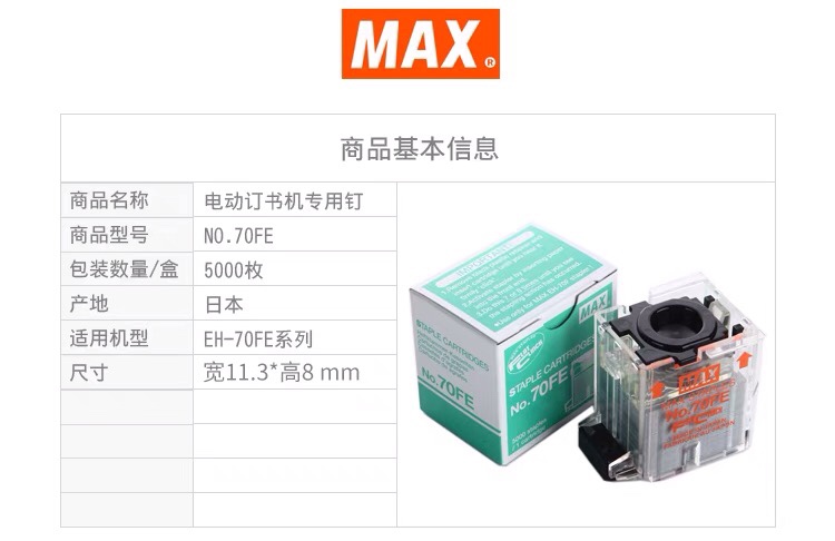 Japanese Mei Kesi MAX electric stapler special nail NO 70FE supporting EH-70F imported from Japan