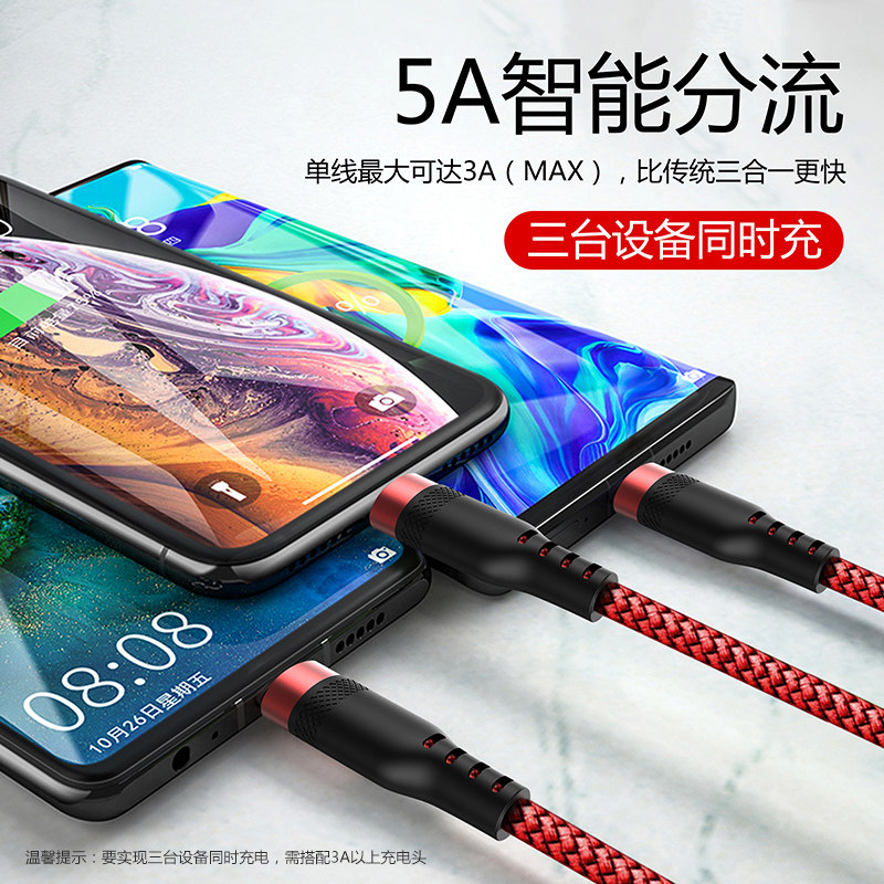 Mobile phone charging line one drag more than three According to line Three-in-one multifunction Quick charge sheet Three-head universal Apple type-c Android Huawei VIVO Xiaomi OPPO lengthened 2m punch electrical line on-board charging