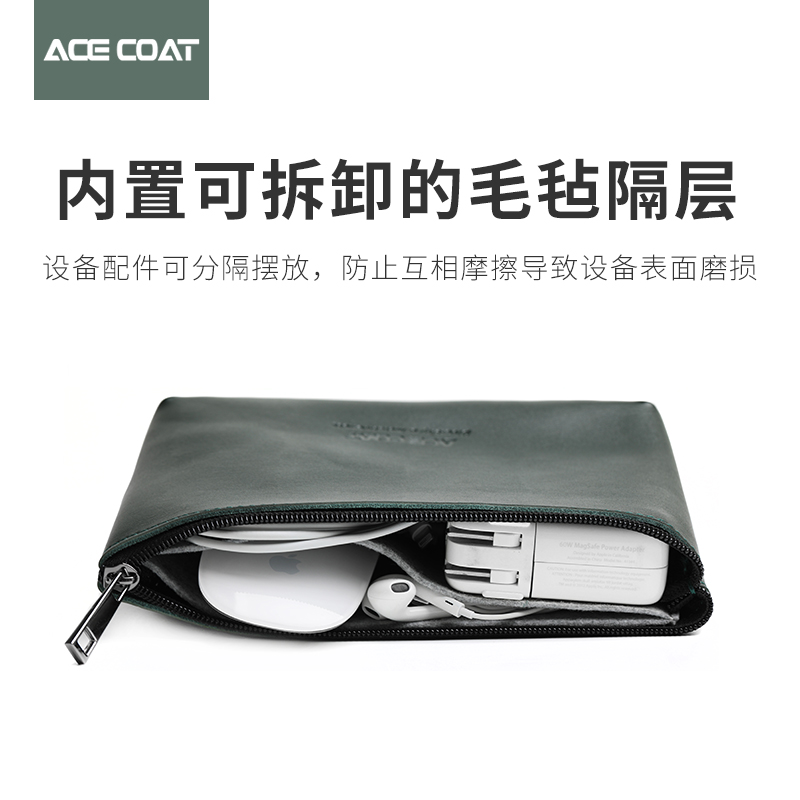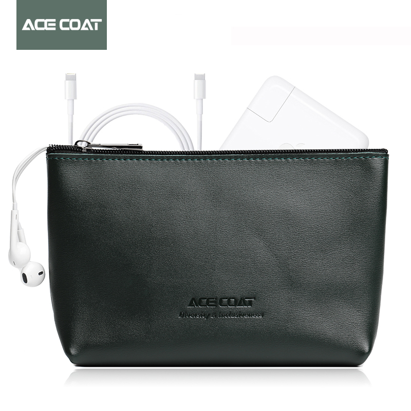 ACECOAT digital accessories containing package applies Apple Huawei Xiaomi laptop power cord sliding mouse bag portable cow leather cortex protective sheath mobile charging source data wire package