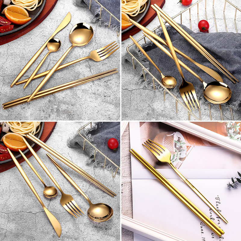 Forks, Knives, Spoons, Chopsticks, Coffee Spoons, Gold Full Cutlery, White Handles, Pink Handles, Red Handles, Dark Green Handles, Full Sets