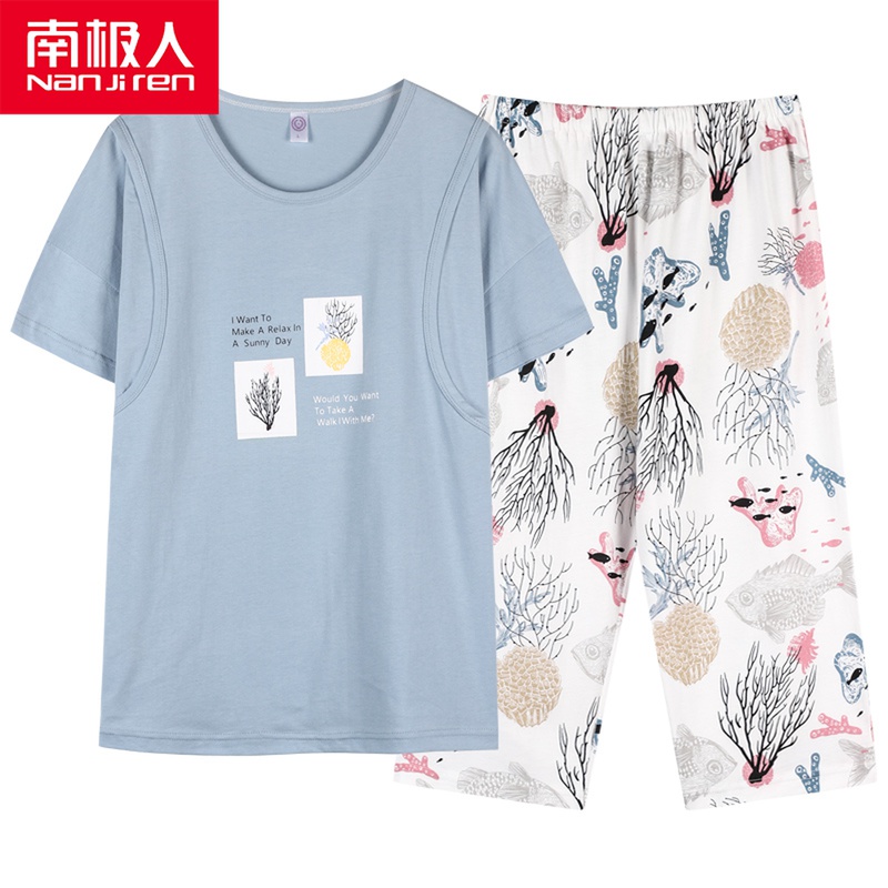 Plus size Lactation Pyjamas Summer Short Sleeves Seven Pants Postpartum Breastfeeding Suit Month Subwear Thin pure cotton pregnant woman Summer