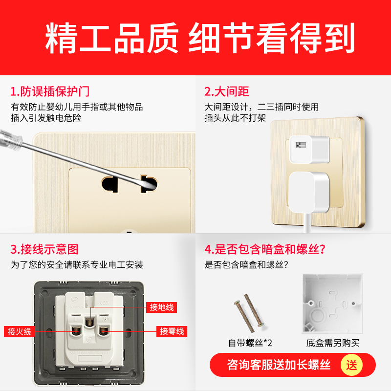 Five holes (limited purchase of 1) multi-beat and not-open five holes (limited purchase of 1) Multi-beat-no-five-hole socket dislocation five-hole five-hole with USB socket 16A socket (air conditioning water heater)