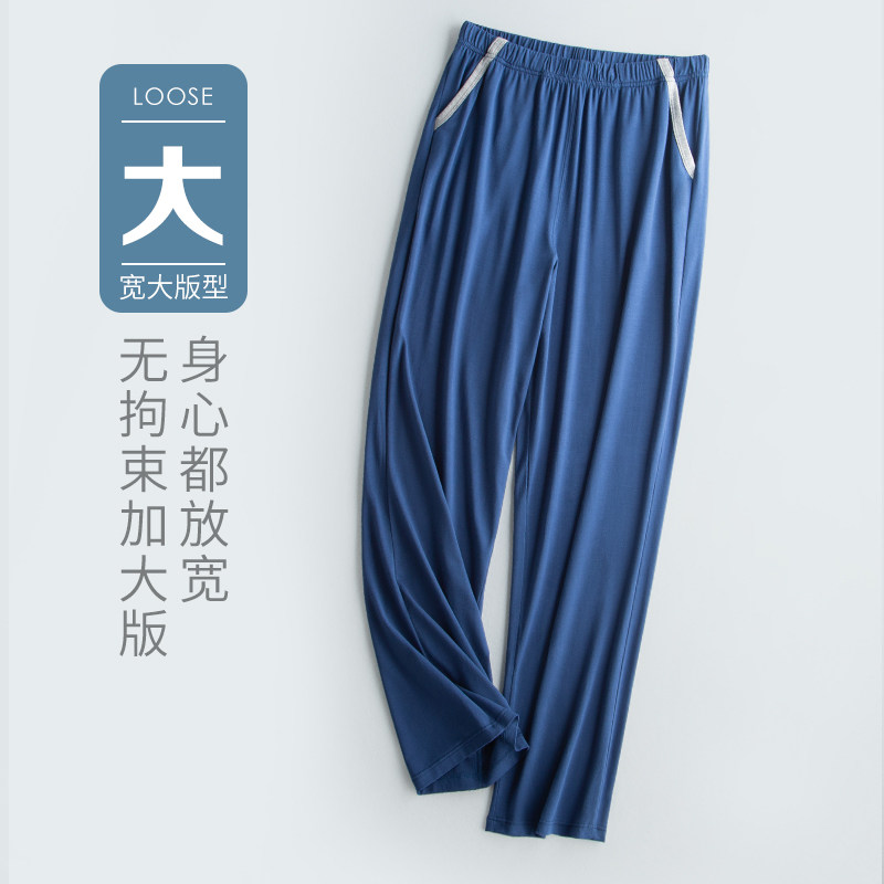 New Pint Mordale Sleeping Pants Men's Summer Loose Sleeping Home Long Pants Ice Silk Thin and Worn Pants Outside of the Air Conditioning Pants