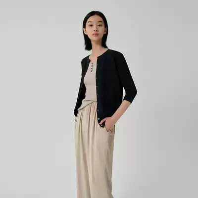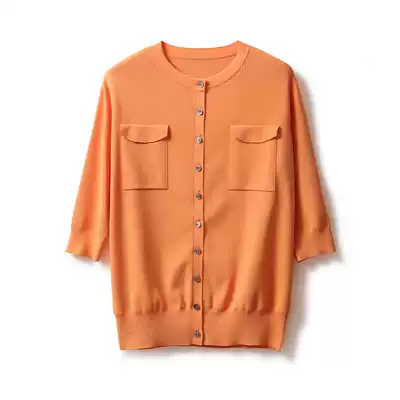(ZZ0122429)Retro Yongjunmei relaxed and comfortable fashionable pocket round neck mid-sleeve knitted pullover
