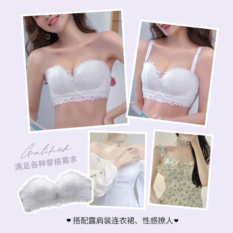 Strapless underwear Women's thin summer small chest gathered non-slip no rim girl bandeau chest wrap invisible bra cover