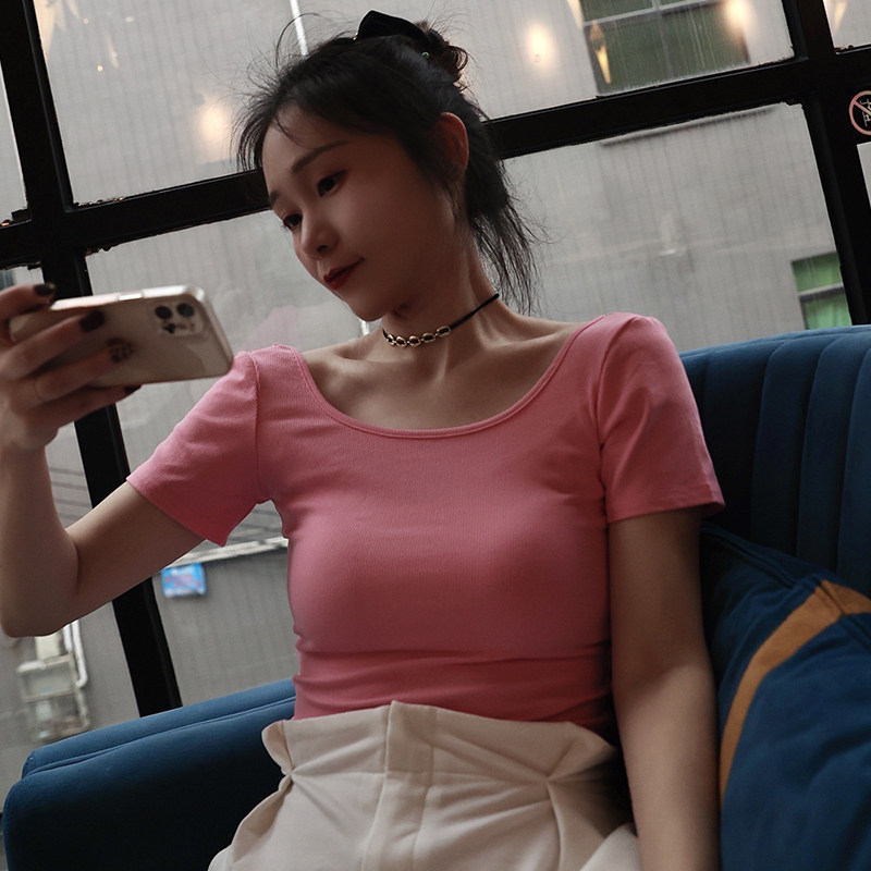 150 short summer clothes T-shirt female 145 short T-shirt xxs plus small size backless xs short sleeve blouse