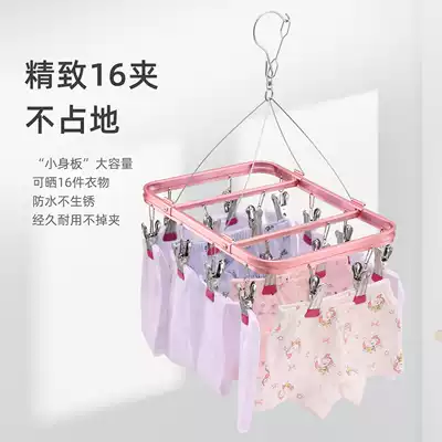Stainless steel drying rack multi-clip sock clothes function clip round drying cool household underwear artifact adhesive hook