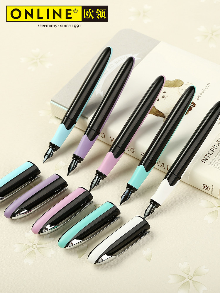 ONLINE European-collar German imported black-tip European-style Ming-tip primary school students third grade special positive posture hard pen color purple replaceable non-carbon ink sac ink absorber non-leaking ink pen