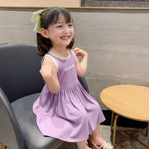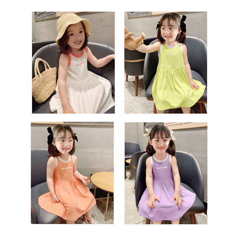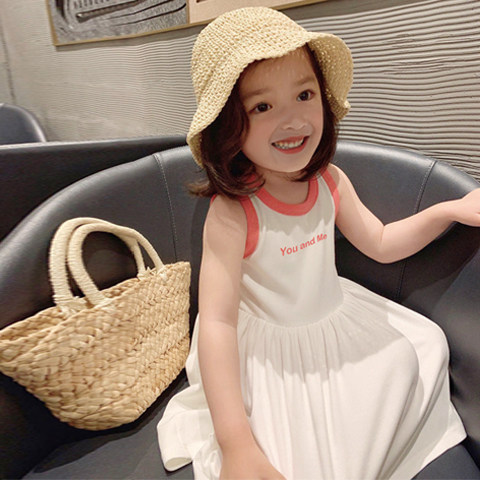 Girls dress ice silk cotton summer dress 2021 new summer children's pleated skirt baby Korean version girl tank top skirt