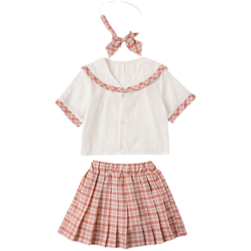 Girls' college style set summer 2021 new fashion navy collar short sleeve T-shirt children's skirt two-piece summer