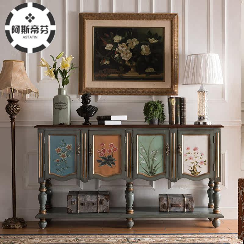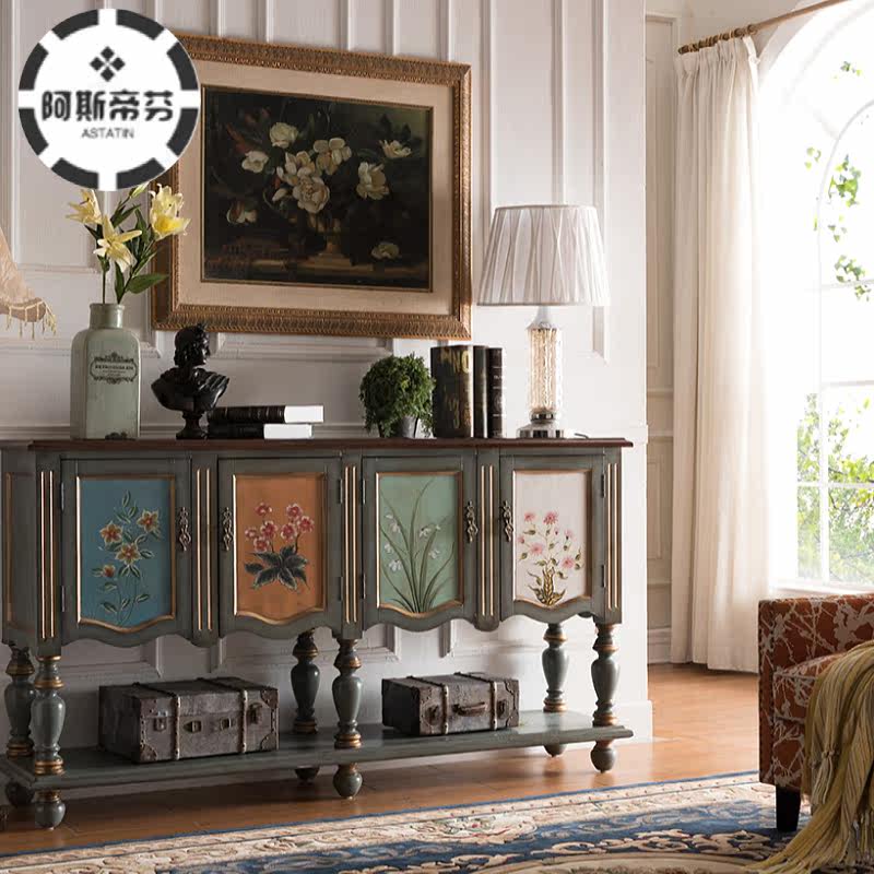 American solid wood door hall Xuanguantai modern minimalist living-room decorating cabinet corridor leaning against wall containing cabinet hand-painted dining cabinet
