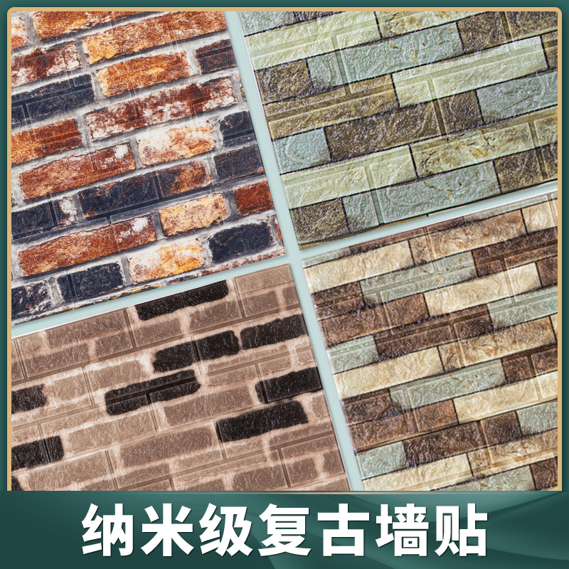 3D three-dimensional wall stickers retro brick brick self-adhesive wallpaper waterproof wall renovation decoration foam paste masonry wallpaper