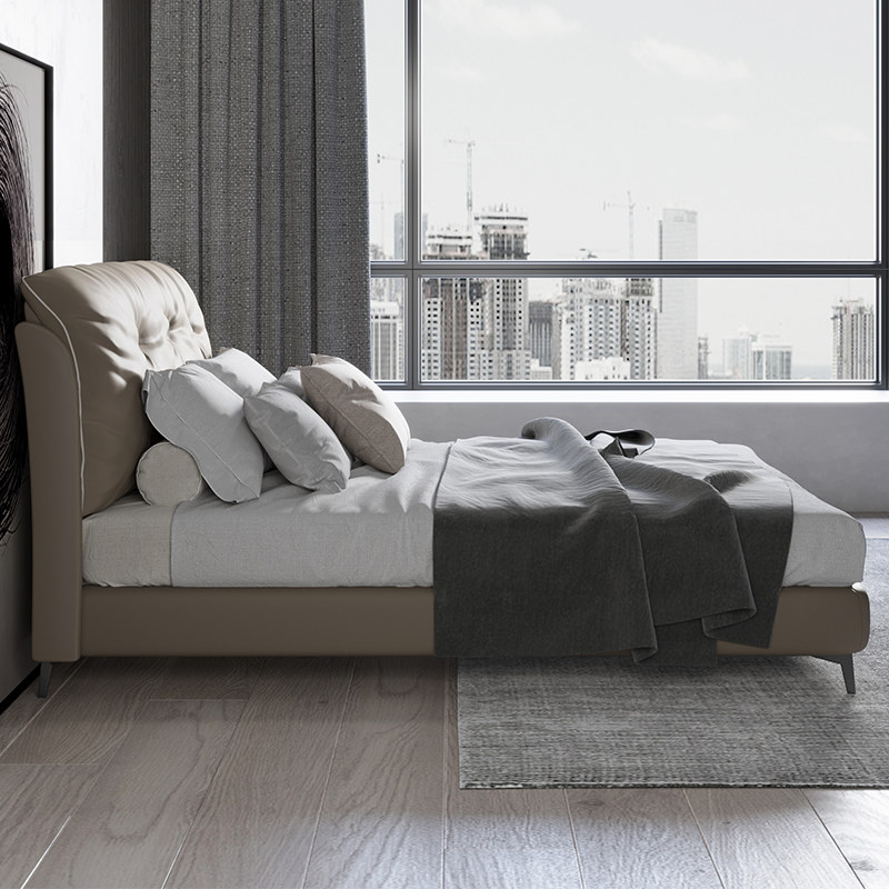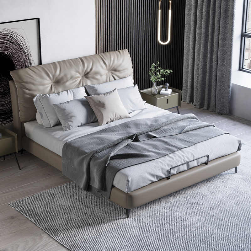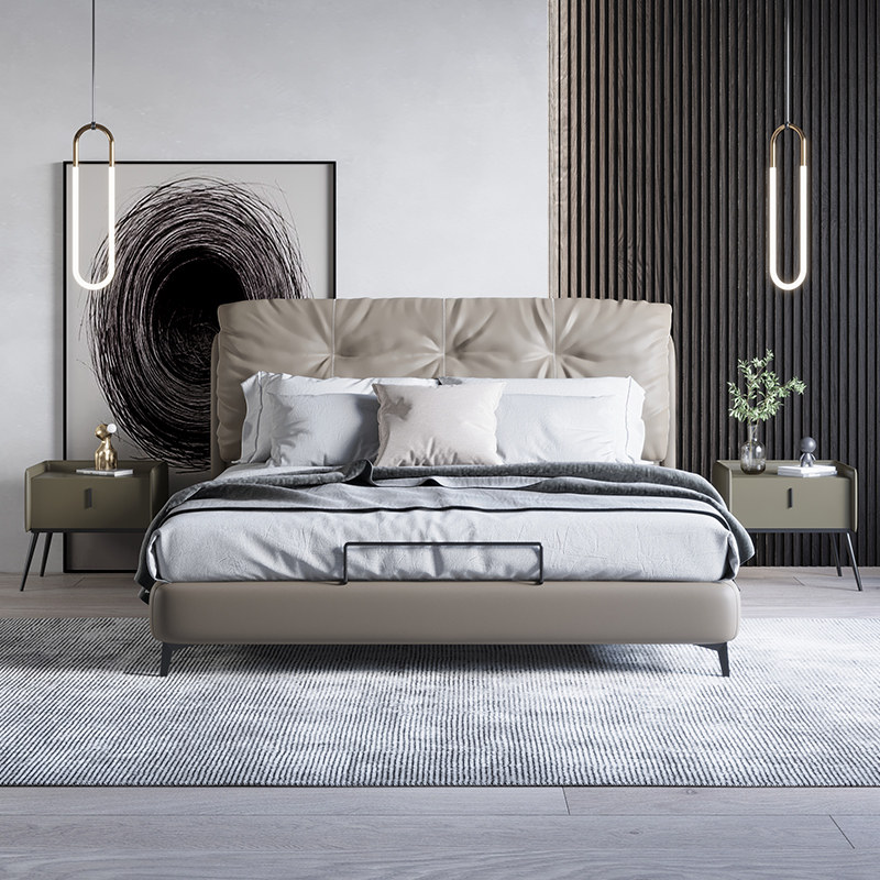 Chinese format Italian light luxury leather bed 18 meters double bed master bedroom bed modern simple fashion creative wedding bed