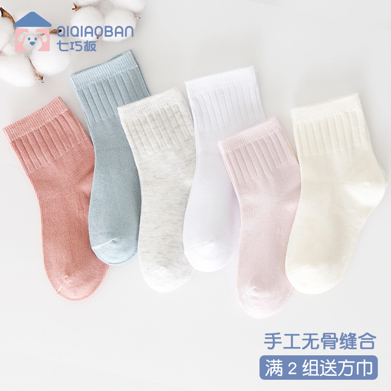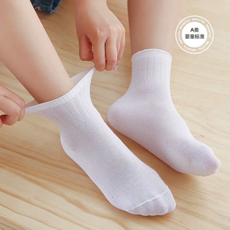 Tangram boys and girls summer thin cotton socks White baby spring and summer children's socks Middle tube spring and autumn children's socks