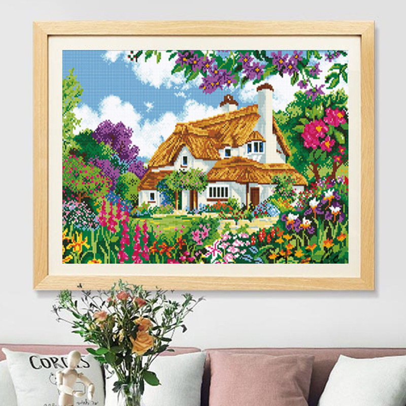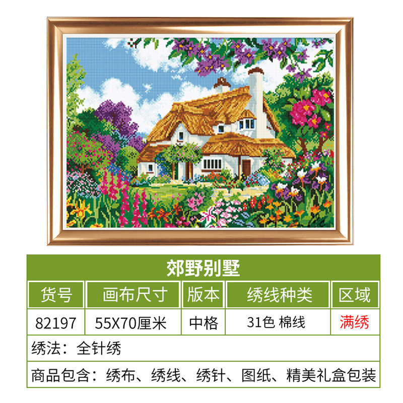 2022 new thread embroidery cross stitch country villa European oil painting fashion simple living room dining room embroidered by hand