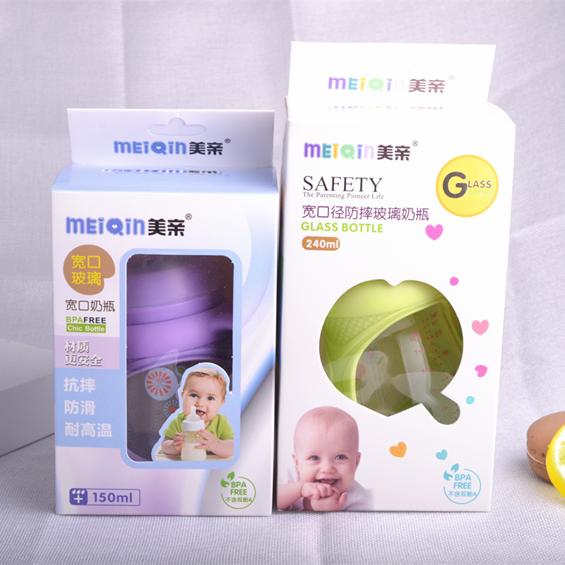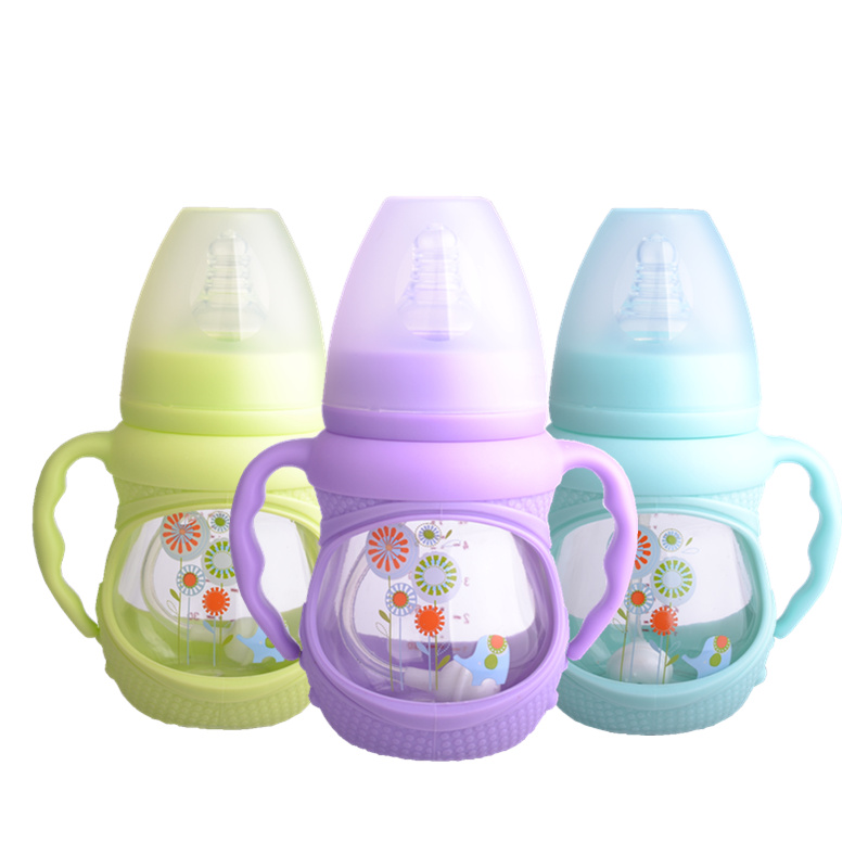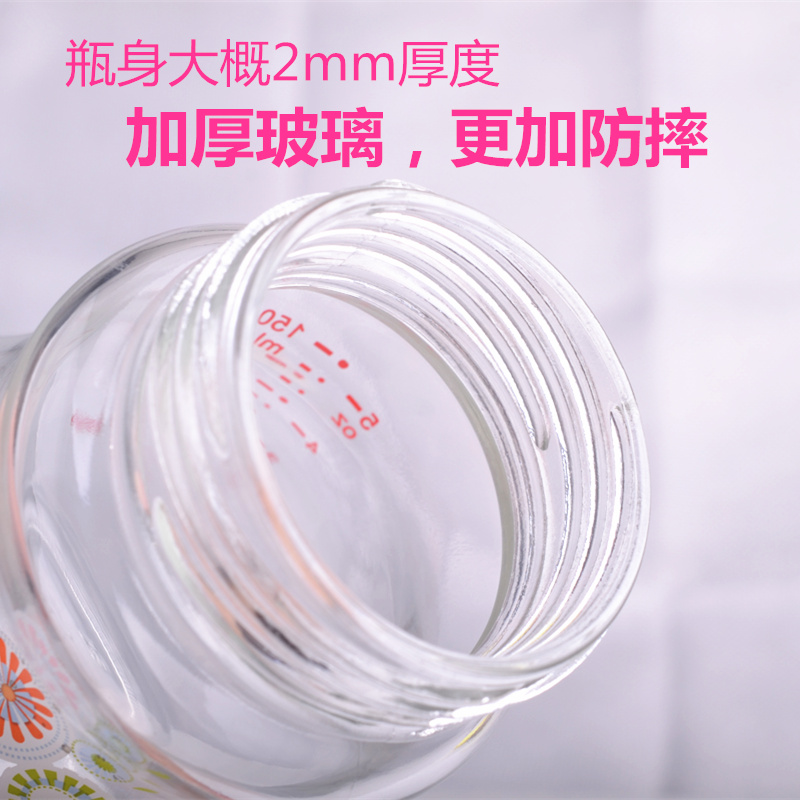 Baby glass bottle-bottle anti-explosion and anti-flatproof gas silicone wide aperture with straw handle Newborn baby Supplies