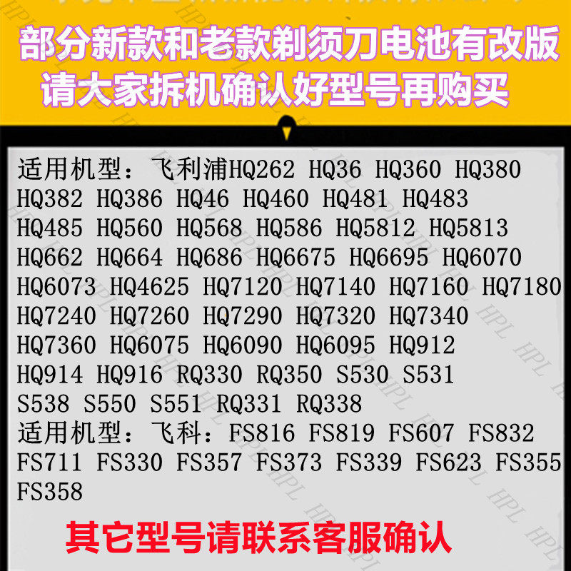 Philips Feike Razor HQ40 HQ460 HQ481 FS816 FS819 FS607 rechargeable battery