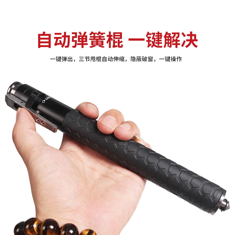 Broken window three-section folding stick alloy steel outdoor vehicular anti-body telescopic stick substick with automatic spring stick-Taobao