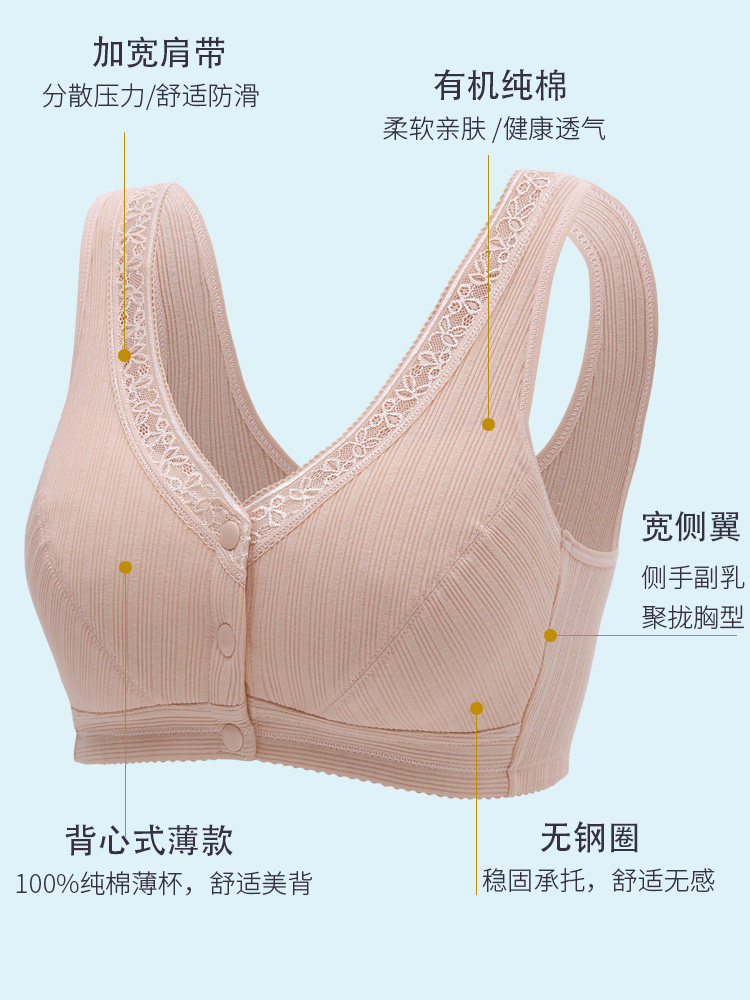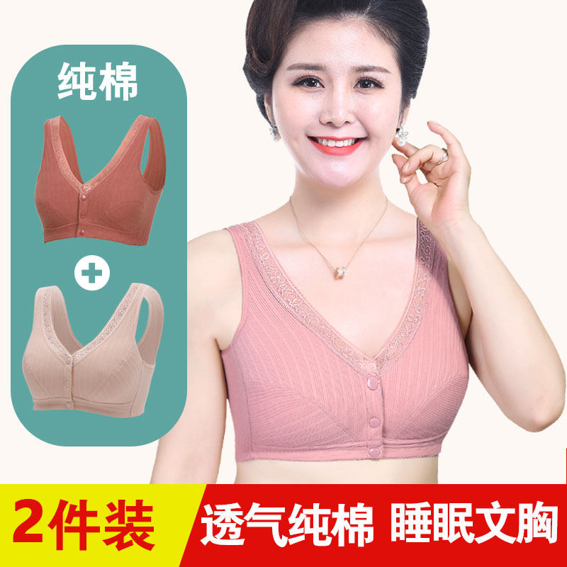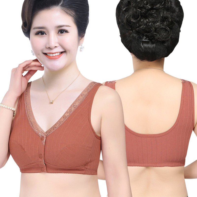 Suitable for mom's bra summer without steel ring vest pure cotton in old age underwear before buckle large size thin bra