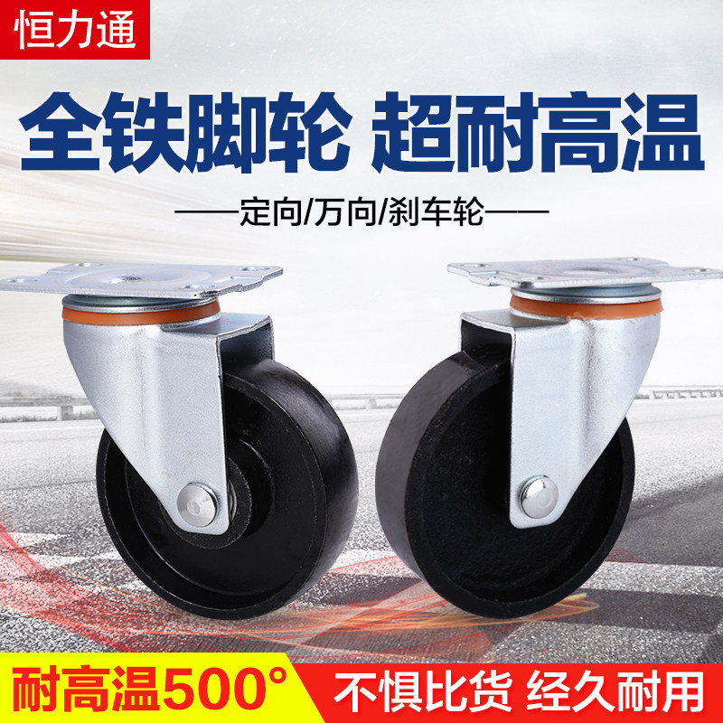 Universal wheel all iron high temperature resistant caster 3 inch 45 inch medium and heavy wire rod with brake roller pig iron metal wheel