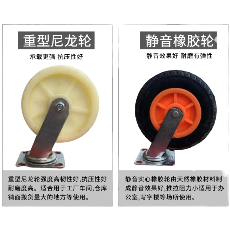 60X40 with 4-inch economical nylon wheel load 300 catties 75X50 with 5-inch economical nylon wheel load 400 catties 75X50 with 5-inch silent rubber wheel load 500 catties 75X50 with