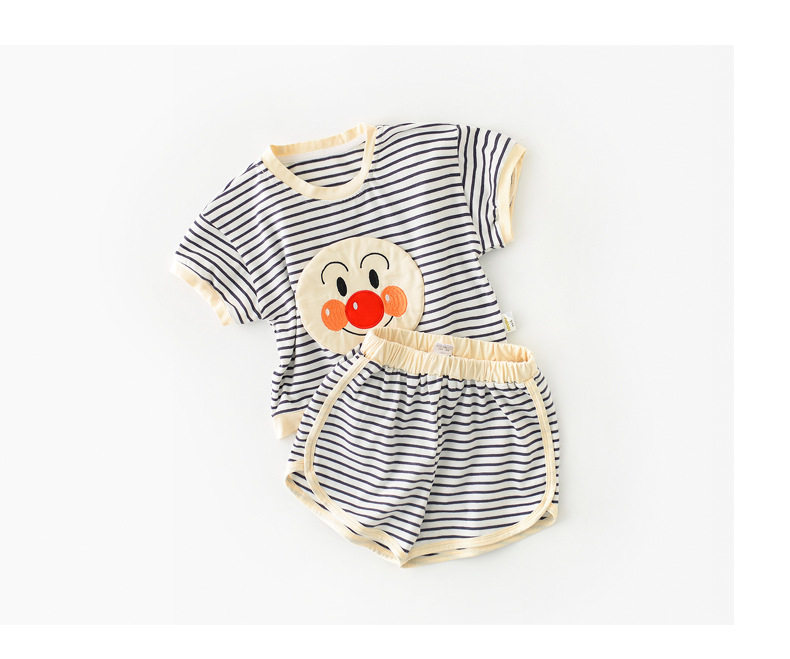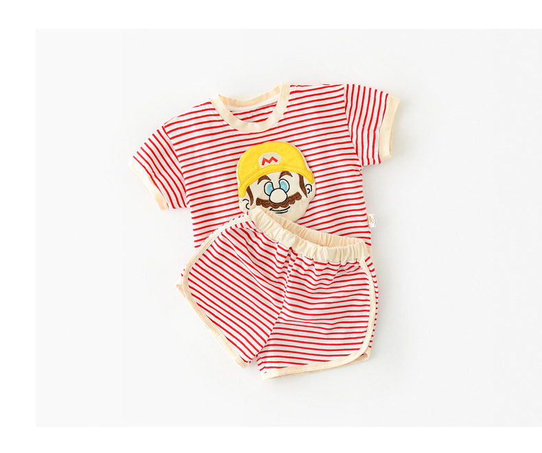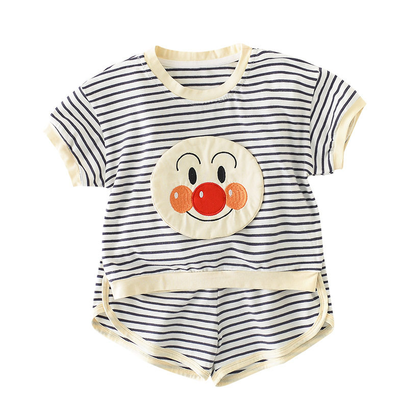 British next kid new male and female baby suit cartoon three-dimensional embroidery striped two-piece short-sleeved shorts tide