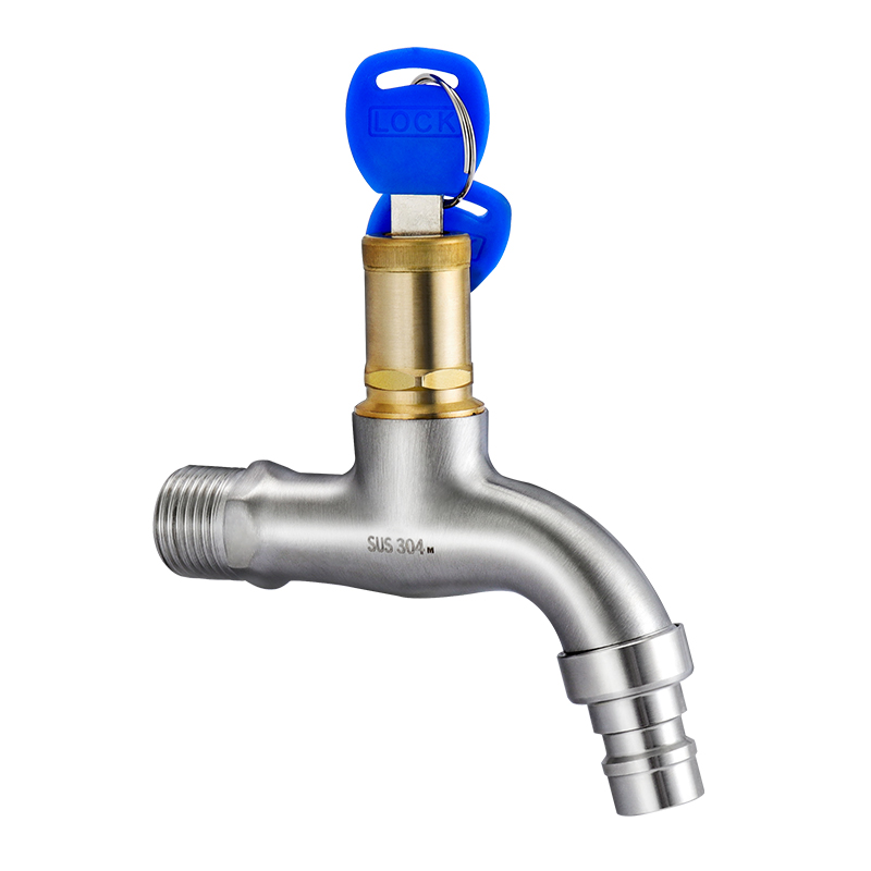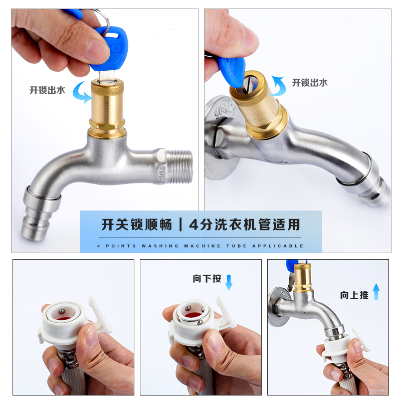 304 stainless steel household faucet with lock key 4 points outdoor lock anti-theft faucet with key mop