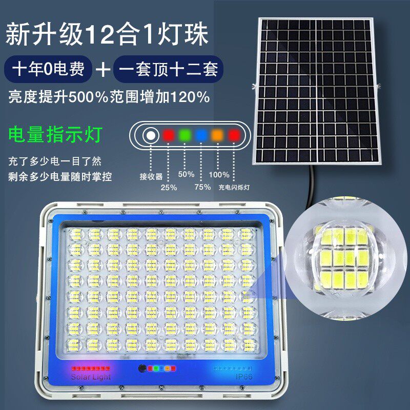 Solar outdoor lamp courtyard home lighting modern new rural one drag two 200w two-piece flashing super bright street lamp