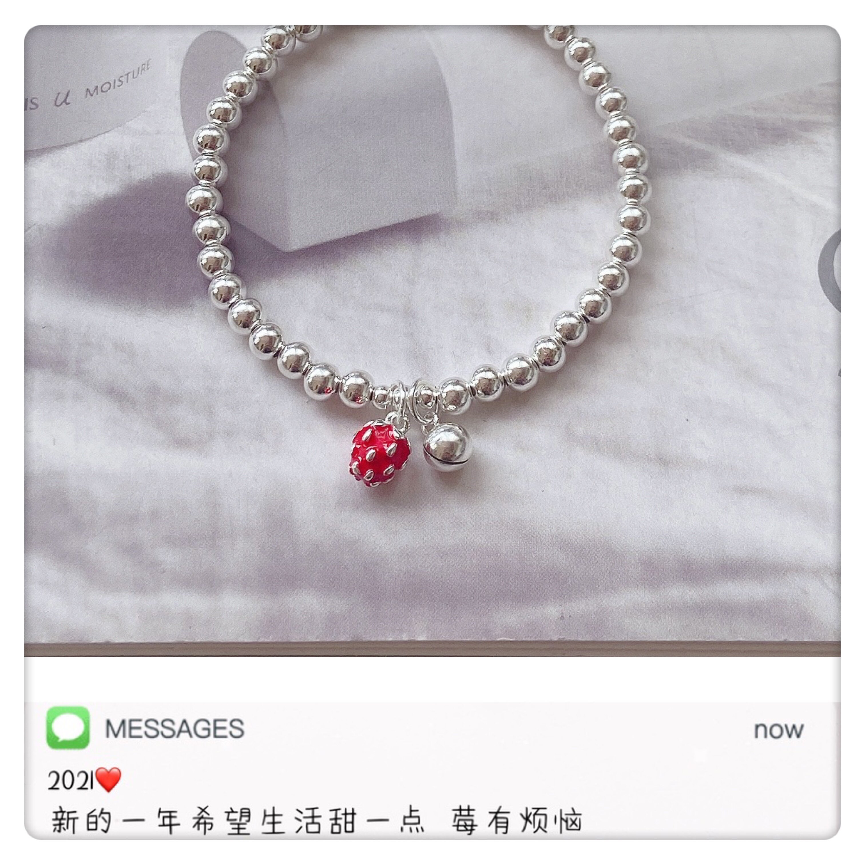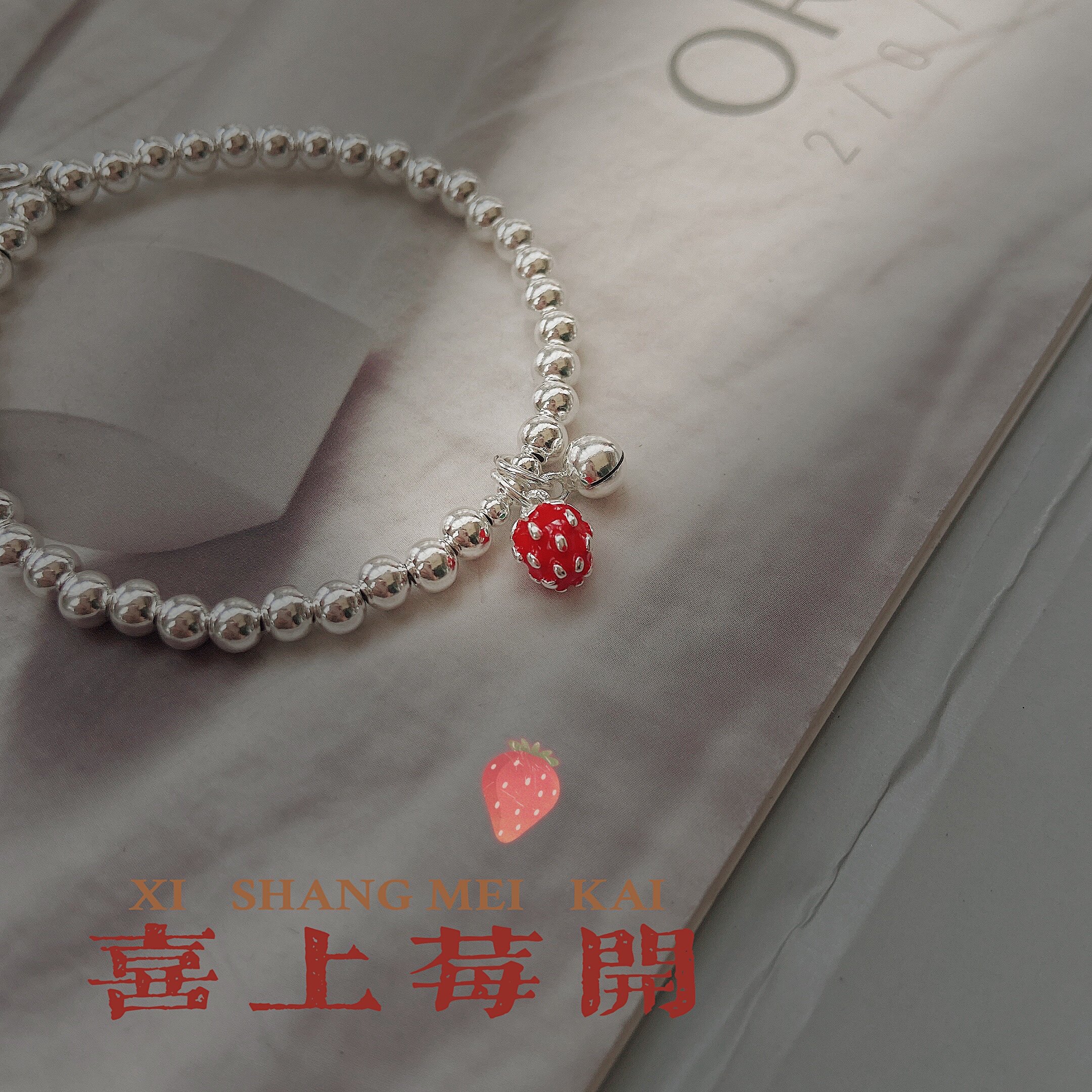 2022 Lovely sweet strawberry bracelet 925 pure silver bead bell ball for children and children of the family and girl's gift Valentine's Day