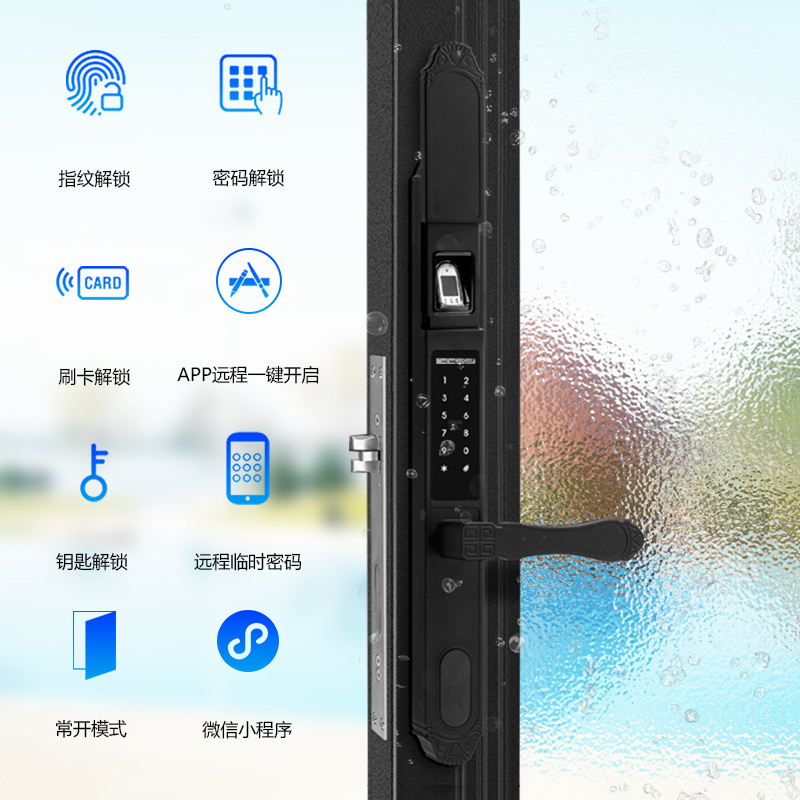 ICCSSI Aiqi broken bridge aluminum fingerprint lock KFC glass door aluminum alloy courtyard door waterproof smart password lock