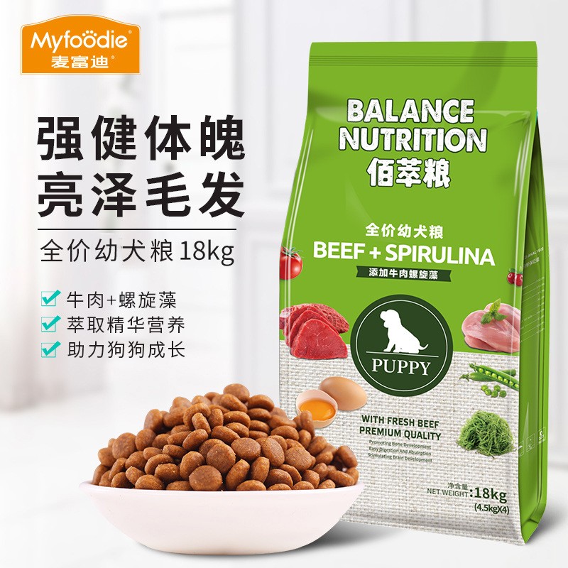 Maifudi dog food 2kg Baicui grain 4 catties beef egg yolk into puppies food Teddy golden retriever universal dog food 40 catties