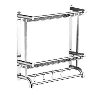 Powder room shelf Wall-mounted punch-free double-layer bathroom towel rack Stainless steel 2-layer 3-toilet toilet pendant