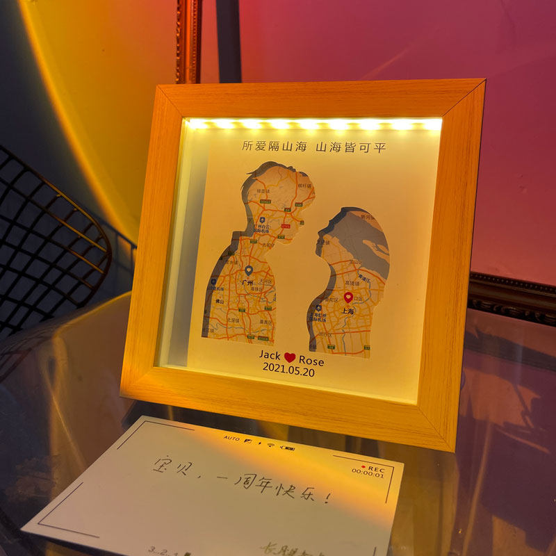 Exotic couples giftphoto customization map frame gift box for boys anniversary Christmas present