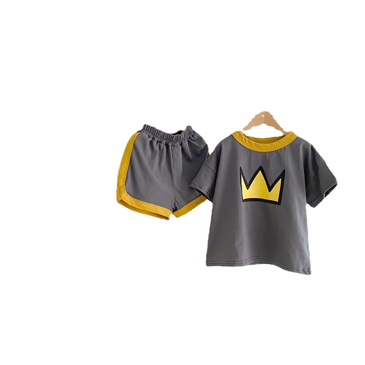 Summer children's Western style short-sleeved suit male and female baby casual sports T-shirt shorts two-piece baby Korean tide