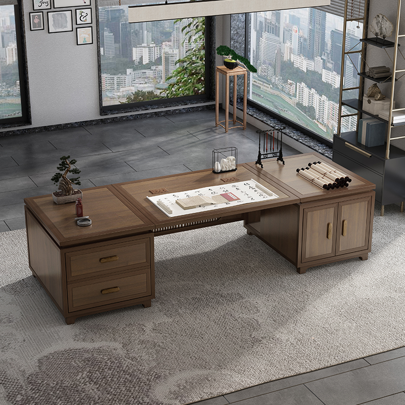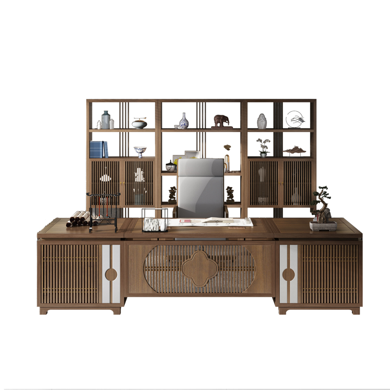 New Chinese Desk Solid Wood Large Bandae Combined President Table Boss Table Modern Light Luxury Office Furniture Custom