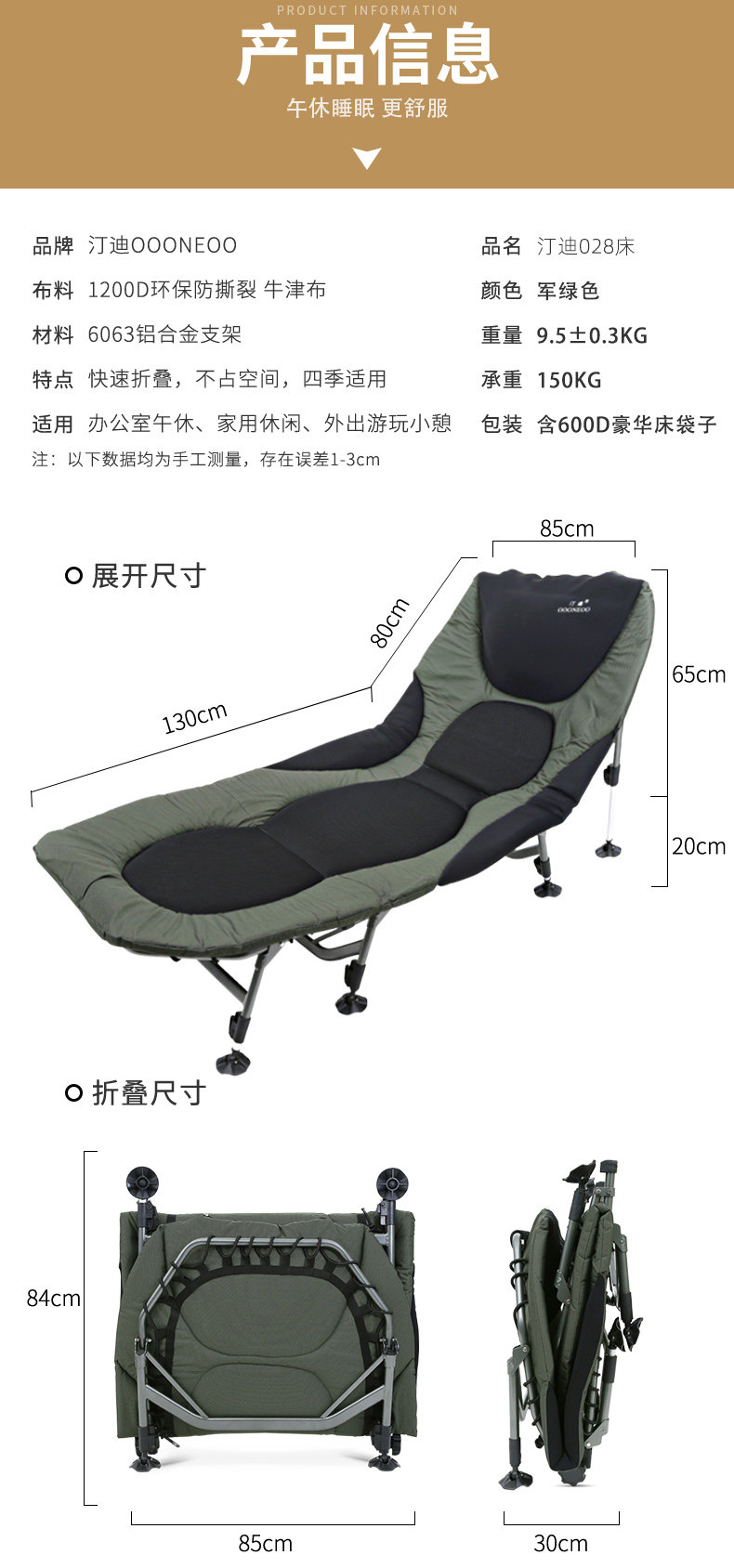 Field folding bed Single bed Portable simple lunch break bed Office home nap Marching bed Dual-purpose recliner