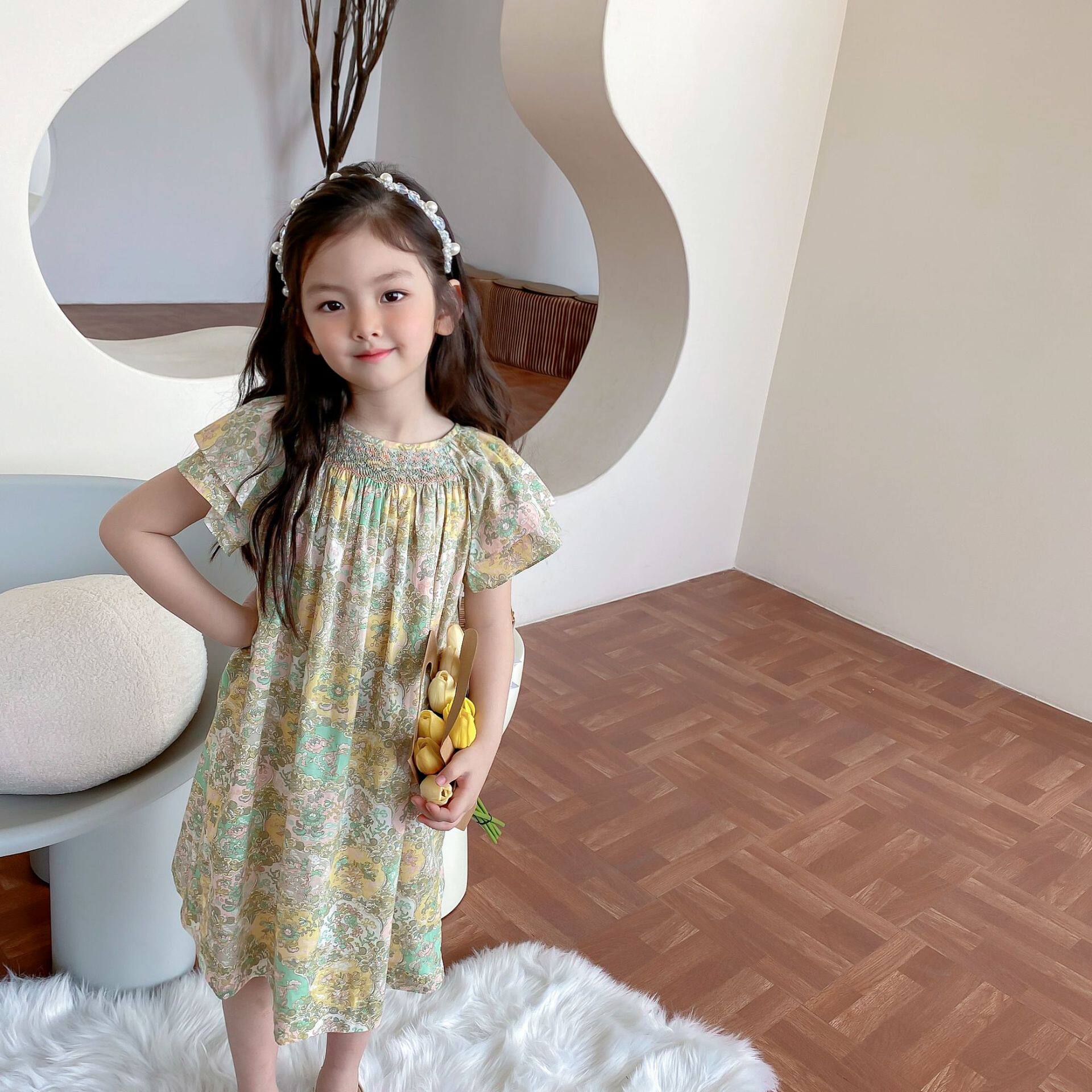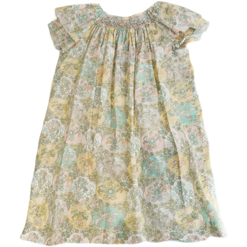 bp same girl girl Yinglen retro printed double layer 1 4 inch sleeve wrench sleeve foreign dress Children pure cotton Swept Swept dresses